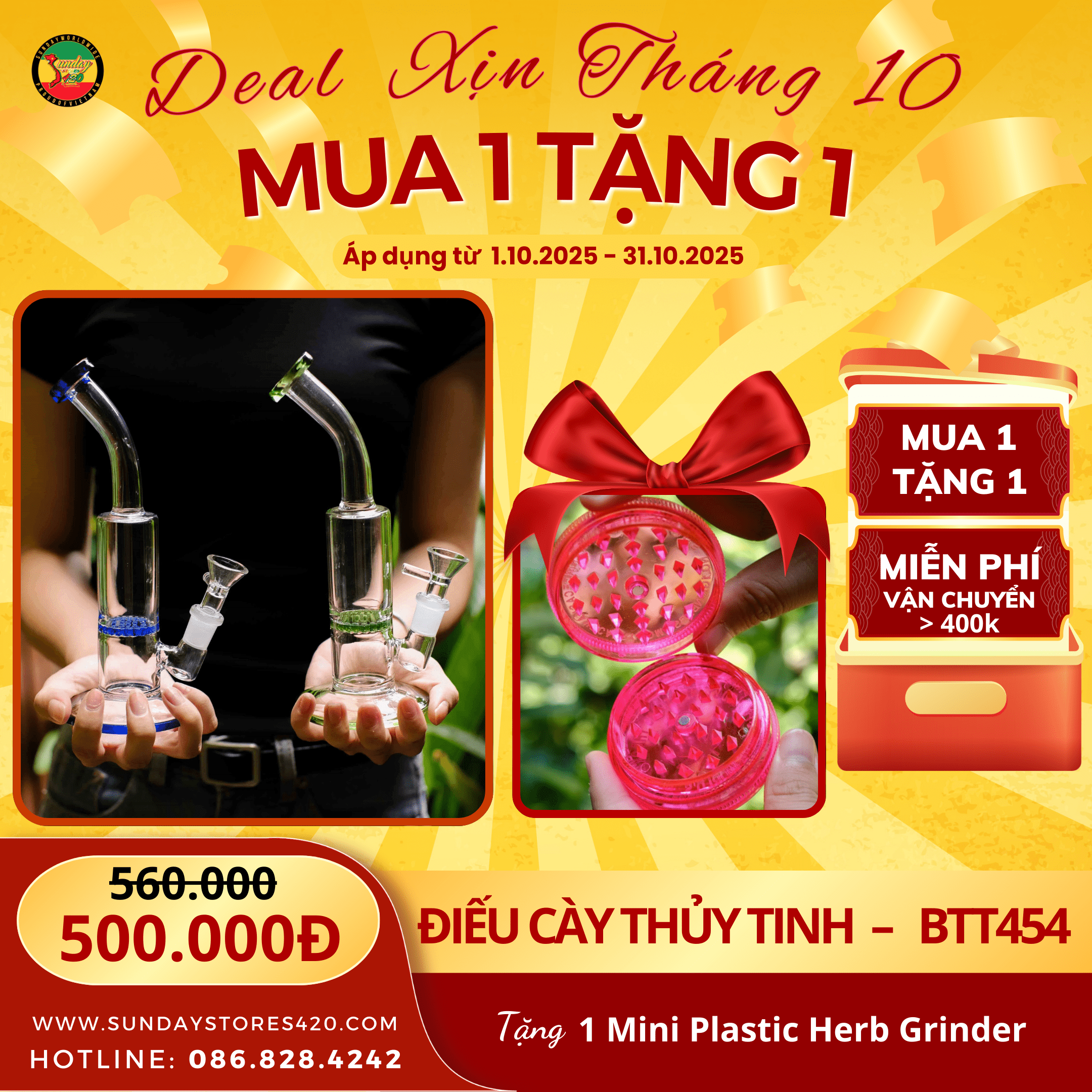 - Combo Tiết Kiệm Chi Phí: Sunday cũng chuẩn bị các Combo Tẩu, Giấy… kết hợp với nhiều loại phụ kiện tiện lợi, độc đáo như Cối xay, Lọc rời, Tips lọc,… cùng những mức giá siêu hời, tiết kiệm tiền bạc và thời gian tìm kiếm.